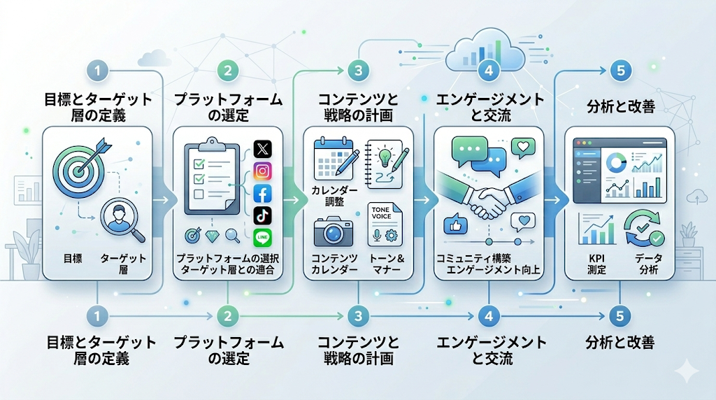 実際にSNS運用を始める際の手順を解説します。事前の準備が成功を左右します。