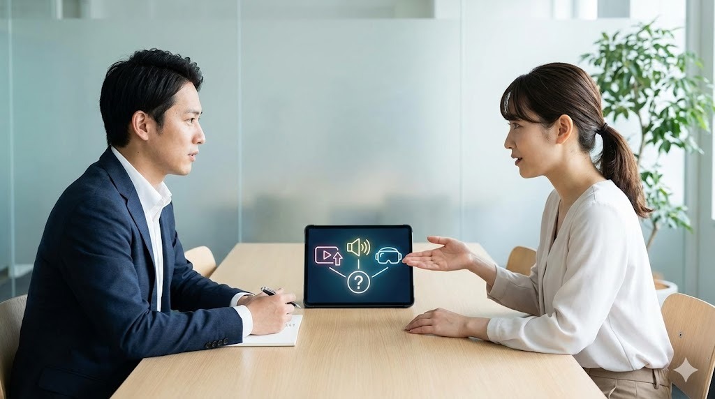デジタルメディアは動画、音声、テキストなど、複数の種類があります。各形式の役割を明確にしたうえで、どのようにアイデアを具体化し、情報発信を行うかの流れを把握しましょう。