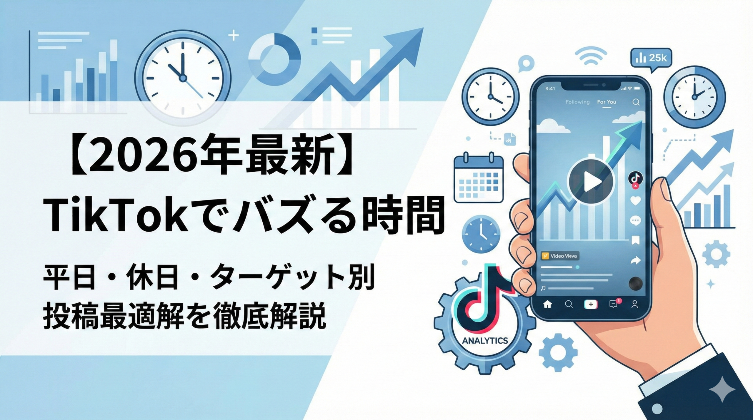TikTokで動画をバズらせたいなら投稿時間が重要です。実は平日・土日で「伸びる時間」は違います。本記事では、全世代・ジャンル別の「バズる時間帯」と、アナリティクス分析による最適解を徹底解説。戦略的な投稿で再生数を劇的に伸ばしましょう。