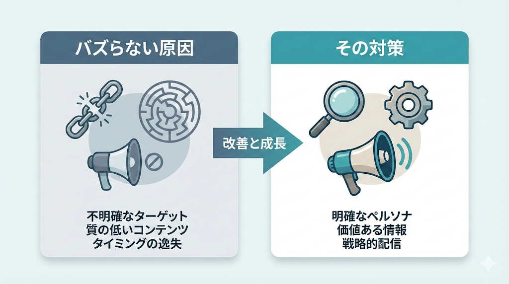 時間を合わせてもバズらない場合、コンテンツ自体に問題があるかもしれません。