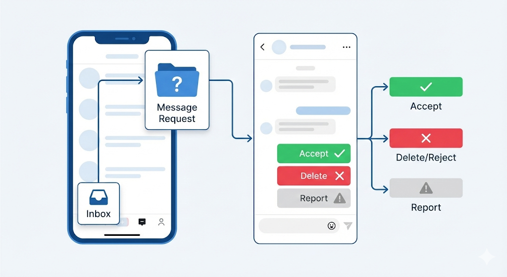 メッセージリクエストが届いた際、どこで内容を確認し、どのように対応すればよいのでしょうか。具体的な操作手順を解説します。