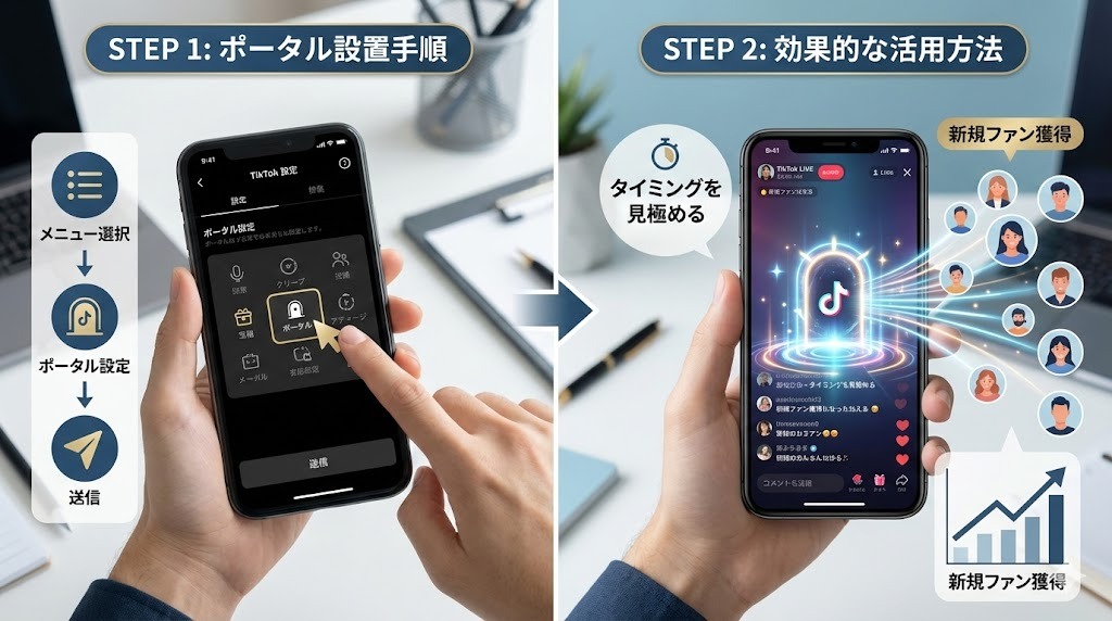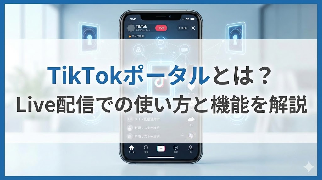 TikTokライブの新機能「ポータル」をご存知ですか?宝箱との違いや具体的な使い方、設置手順を分かりやすく解説します。新規リスナー獲得や視聴者維持に直結する活用術を学び、配信の盛り上がりを加速させましょう。