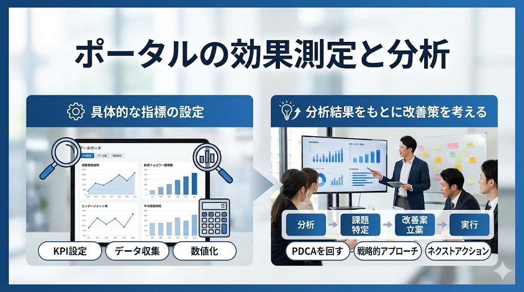 ポータル運用を行った後は必ずその効果を振り返り、次回の配信に活かす必要があります。感覚的な「増えた気がする」ではなく、数値に基づいた分析が成長の鍵です。