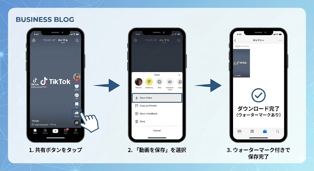 TikTok動画のダウンロード・保存方法(ウォーターマークあり)