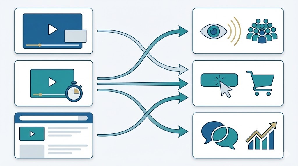 YouTube広告には複数の形式があり、それぞれ異なる役割と効果を持っています。 広告の種類を理解することで、なぜそのタイミングで流れるのかが分かります。