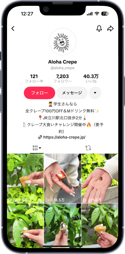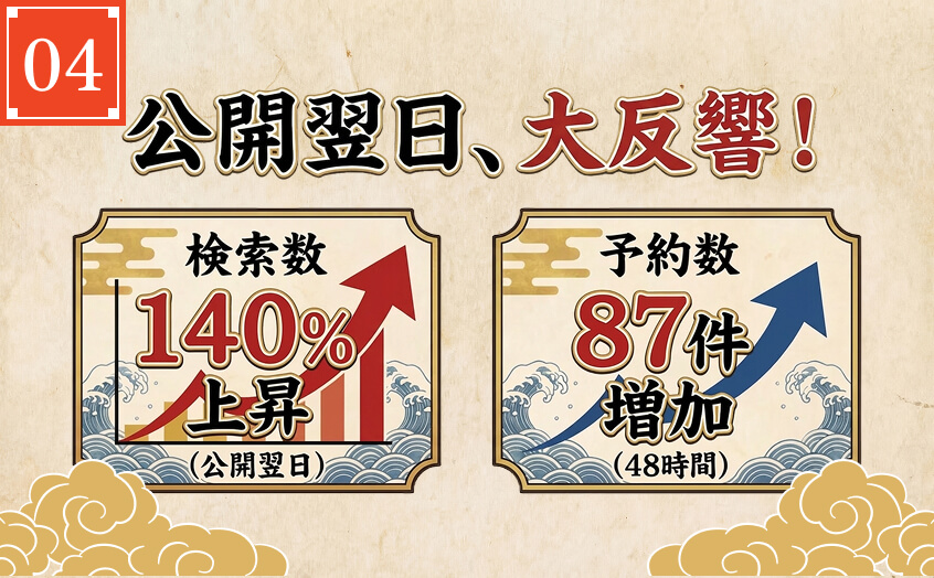 公開翌日に検索数140%上昇、48時間で予約数87件増加した実績など、「有名になって終わり」ではない、売上に直結する運用を追求します。TikTok Shop連携も最短でサポート可能です。